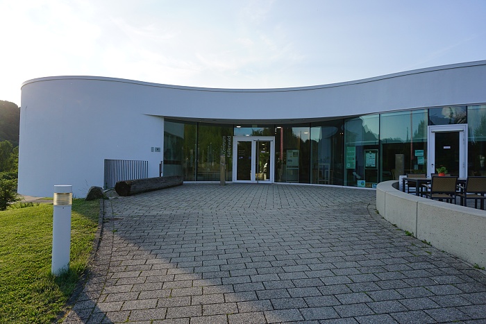 Der örtliche Grillverein leistet sich hierzulade eine richtig große und schicke Hütte, die bald am Wegesrand auftaucht. Nun ist das imposante Tor bereits in Sichtweite. Auf der einen Seite heißt es den Wanderer in Kirchlotheim willkommen, auf der anderen wird man aus dem Nationalpark verabschiedet. Das Nationalparkzentrum ist nun auch nicht mehr weit. Dort war ich im Vorfeld der Tour schon einmal gewesen um Infomaterial über den Steig einzusammeln und am Morgen des zweiten Tages waren wir nochmal dort. Es ist ein schön gestaltetes Zentrum und lohnt den Besuch auf jeden Fall.