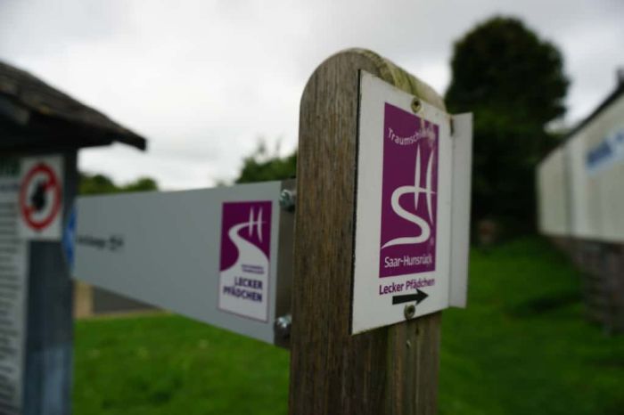 Im Rahmen des diesjährigen Bloggerwanderns sind wir die „Traumschleife Lecker Pfädchen“ gelaufen, die mit ihren ca. 11 km im Mittelfeld liegt und sich mit Höhenmetern vorbildlich zurückhält. Eine echte Genusswanderung eben! Wir sind sie ab Thalfang gegen den Uhrzeigersinn gelaufen, aber das kann natürlich jeder halten, wie er möchte. Für uns war es so herum praktisch, da eine andere größere Gruppe die Runde zeitgleich mit dem Uhrzeigersinn lief. So haben sich unsere Touren nicht überschnitten.