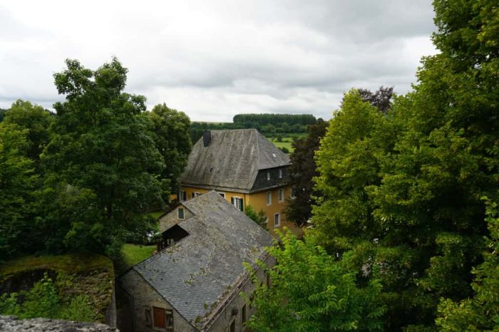 Die zweite Genussstation auf dem „Lecker Pfädchen“ ist historisch! Sie befindet sich bei der Burg Dhronecken und bietet bei Regen ein Dach über dem Kopf. Allzu viel ist von der Burg aus dem 13. Jahrhundert heute nicht mehr zu sehen, aber es lohnt sich, die Überreste zu erkunden. Allen voran den Aussichtsturm, auf den man noch hinaufsteigen kann. Das würde ich auf jeden Fall empfehlen. Der Ausblick kann sich sehen lassen! Die Burg Dhronecken hat in ihrer Geschichte so einiges erlebt. Kämpfe, Belagerungen und sogar ein Erdbeben haben ihr ordentlich zugesetzt. Es ist heute kaum noch vorstellbar, welche Größe sie einst gehabt haben muss. Aber es stachelt die Phanstasie an und das ist ja auch nicht schlecht.