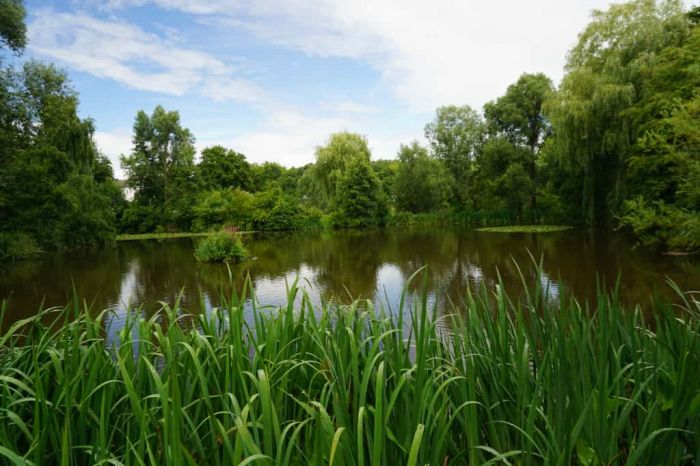 Nach der letzten leckeren Rast ist man nun im Endspurt der Runde. Einen letzten schönen Platz gibt es aber noch, ein hübscher von Schilf umgebener und von Enten bewohnter Teich. Nach den Regentropfen zuvor kam hier sogar die Sonne wieder hervor.