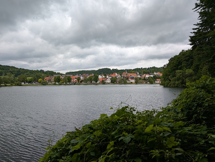 Als wir wieder am Edersee ankamen, war -Traditionen soll man ja bekanntlich wahren- auch der Regen wieder zur Stelle. Also mal wieder ein kurzer Stopp und hinein ins Regenzeug. An diesem Tag haben wir es erst gar nicht mehr wieder ausgezogen. Die Regenröcke sind wunderbar luftig, die Regenjacken auch und die Schuhe meistern den nass-trocken-Wechsel sowieso vorbildlich. Die laufen sich einfach trocken und das sogar bemerkenswert schnell. Was ich dagegen dringend noch brauche, das ist eine Hülle oder einen Liner für meinen Rucksack. Auf dieser Tour musste es ein einfacher Müllbeutel tun, aber die gehen halt schnell kaputt. So habe ich eine richtige Hülle gedanklich auf meine Liste gesetzt.