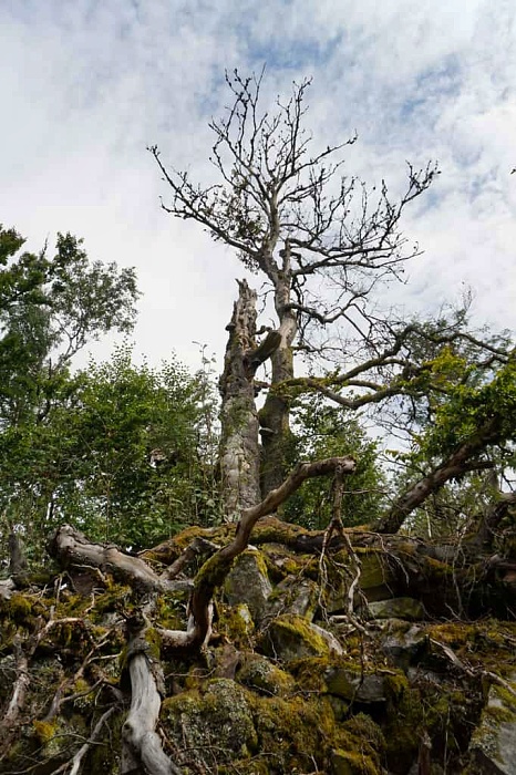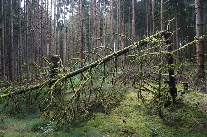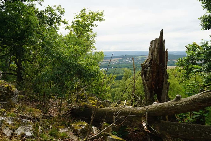 „Natur Natur sein lassen“, das ist hier das Motto. Zwar werden umgestürzte Bäume von den Wegen geräumt, ansonsten lässt der Mensch hier seine Finger aus der Natur, was ich persönlich für ein großartiges Konzept halte. Die Natur kommt wunderbar ohne den Menschen aus,speziell in den Wäldern. Das kann man auf der „Traumscheife Kirschweiler Festung“ deutlich erkennen. Mal sind es normale Wanderwege, dann wieder waren wir auf echten Trampelpfaden unterwegs. Wären diese nicht beschildert, müsste man sich fragen, ob man hier überhaupt laufen darf. Gelegentlich sollte man auch in der Lage sein, ein kleiner Bäumchen auf dem Weg zu übersteigen.