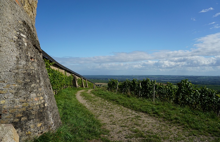 Hat man es nach oben geschafft, dann steht sehr bald auch schon wieder der Abstieg nach Kiedrich und damit der letzte Abschnitt der Etappe an. Nach einem kleinen Wald gelangt man zurück in Weinberge und schließlich in den Ort.