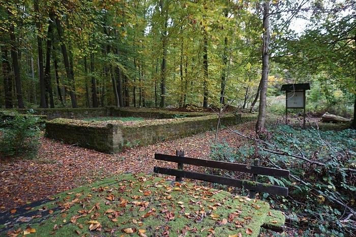 Das Wamboldtsche Schlößchen liegt bald am Weg. Auch hier wären wir beinahe vorbeigelaufen. Die Sehenswüdigkeiten auf dieser Runde liegen mitunter gut versteckt. Über einen kurzen etwas rumpeligen Pfad gelangt man zu den Ruinen, die sich „Wamboltsches Schlößchen“ oder auch „Villa Rustica“ nennen. Hier laden zudem Tische und Bänke zu einer Pause ein. Schilder geben Aufschluss über das Leben und die militärische Architektur zu Zeiten der Römer.