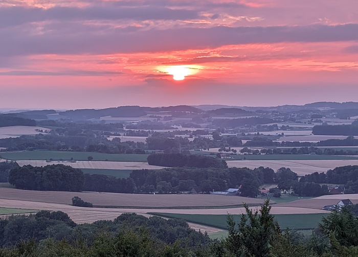 Lange ausschlafen funktioniert bei uns einfach nicht so richtig. Erst recht nicht im Sommer, wenn es früh hell wird. Hier an diesem Spot war es auch nicht ratsam, denn lange würde es nicht dauern bis die ersten Sonntagsausflügler eintreffen würden. Die Sonne schickte gerade ihre ersten Strahlen durch die Wolken, da waren wir bereits auf den Beinen.Noch reichlich zerknittert und gähnend gönnten wir uns noch kurz den Sonnenaufgang und die frische Morgenluft, die an diesem Tag sehr bald der Hitze weichen sollte.
