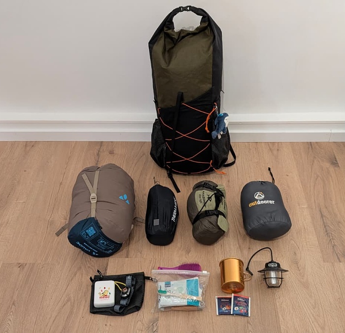 Ohne eine Wanderung vorab packt man meist eher auf Komfort ausgelegt und nicht auf möglichst geriges Gewicht, was man dieser Packliste auch anmerkt. Das bitte berücksichtigen!