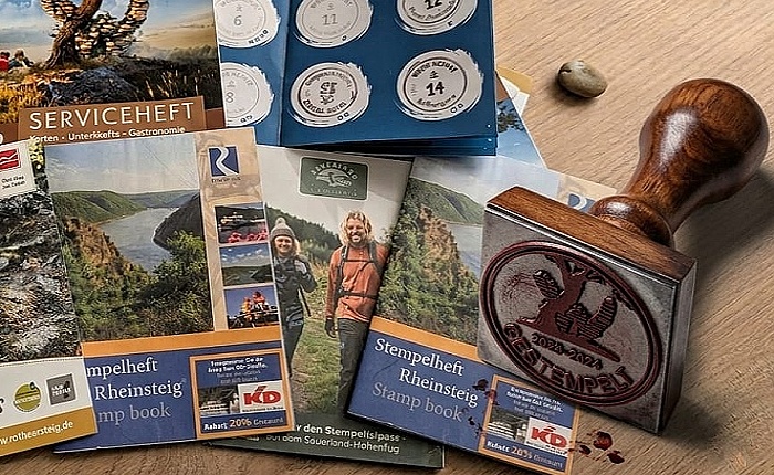 Bis vor einigen Jahren gab es auch vom Rheinsteig einen Wanderpass. Solch ein Exemplar habe ich selber hier. Inzwischen gibt es den Pass zwar nicht mehr, aber wenn du noch einen hast, kannst du dir an den angegebenen Stellen nach wie vor einen Stempel geben lassen. Hast du deinen Stempelpass voll, schickst du ihn wie beschrieben ein und bekommst auch eine Urkunde! Das habe ich für diesen Artikel erfragt.