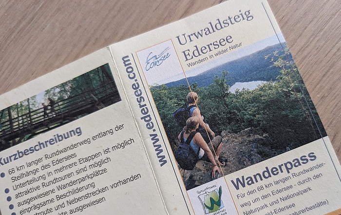 Der Urwaldsteig führt auf 66 km rund um den Edersee. Auf diesem Wanderweg schlägt man bei den Wanderstempeln eine andere, exklusivere Richtung ein. Stempel sammeln kann jeder, der an den eigens angebotenen Etappenwanderungen teilnimmt oder an einer dreitägigen Tour. Diese wurde in 2025 zweimal angeboten. Sowohl die Etappenwanderungen, als auch die 3-Tage-Touren wird es auch in 2026 wieder geben, was klar für den Erfolg dieses Konzepts spricht. 8 Stempel können insgesamt gesammelt werden. Je mehr Stempel man gesammelt hat, desto größer wird die Überraschung zur Belohnung.