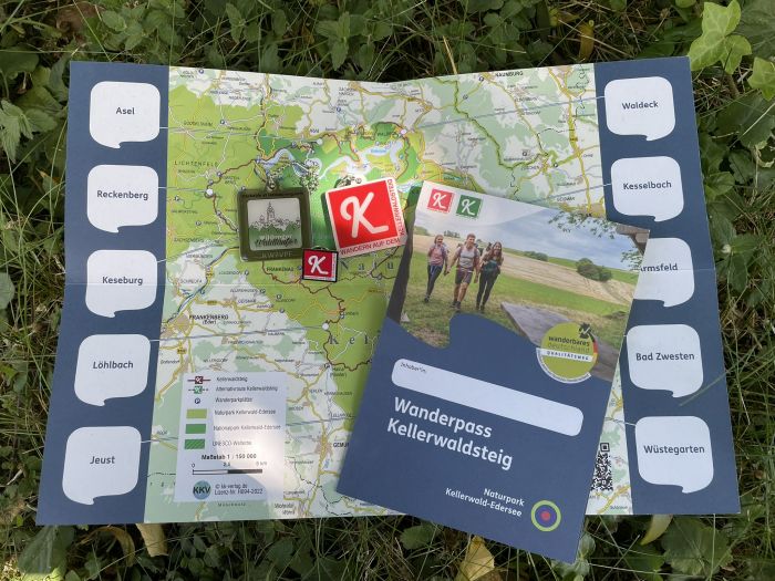 Der Kellerwaldsteig mit seinen 156 km war ursprünglich vom Verein Wildunger Waldläufer als Geocachetour geplant gewesen. Der Wanderpass ist noch jung und erschien erst 2024. Zunächst wurde in Gestronomiebetrieben gestempelt, heute finden Stempeljäger klassische Holzboxen vor. Auf Stempel mit Tinte verzichtet man auf dem Kellerwaldsteig, stattdessen gibt es Stanzen mit verschiedenen Motiven. Das ist auf jeden Fall robuster gegenüber der Witterung und unabhängiger von Öffnungszeiten. Somit ein sehr kluger Schritt. Auch die Stempelstellen erlebten einen Umzug und kamen nach der Verlegung des Kellerwaldsteigs an bessere Positionen. Statt einer Wandernadel erhält man nach Erwanderung des Steigs eine Münze, die sich im Design an der Ursprungsidee orientiert.